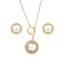 Jewelry Set For Women Gold Color Round Pearl Design Necklace Stud Earrings Party Jewelry 2020 Fashion Jewelry